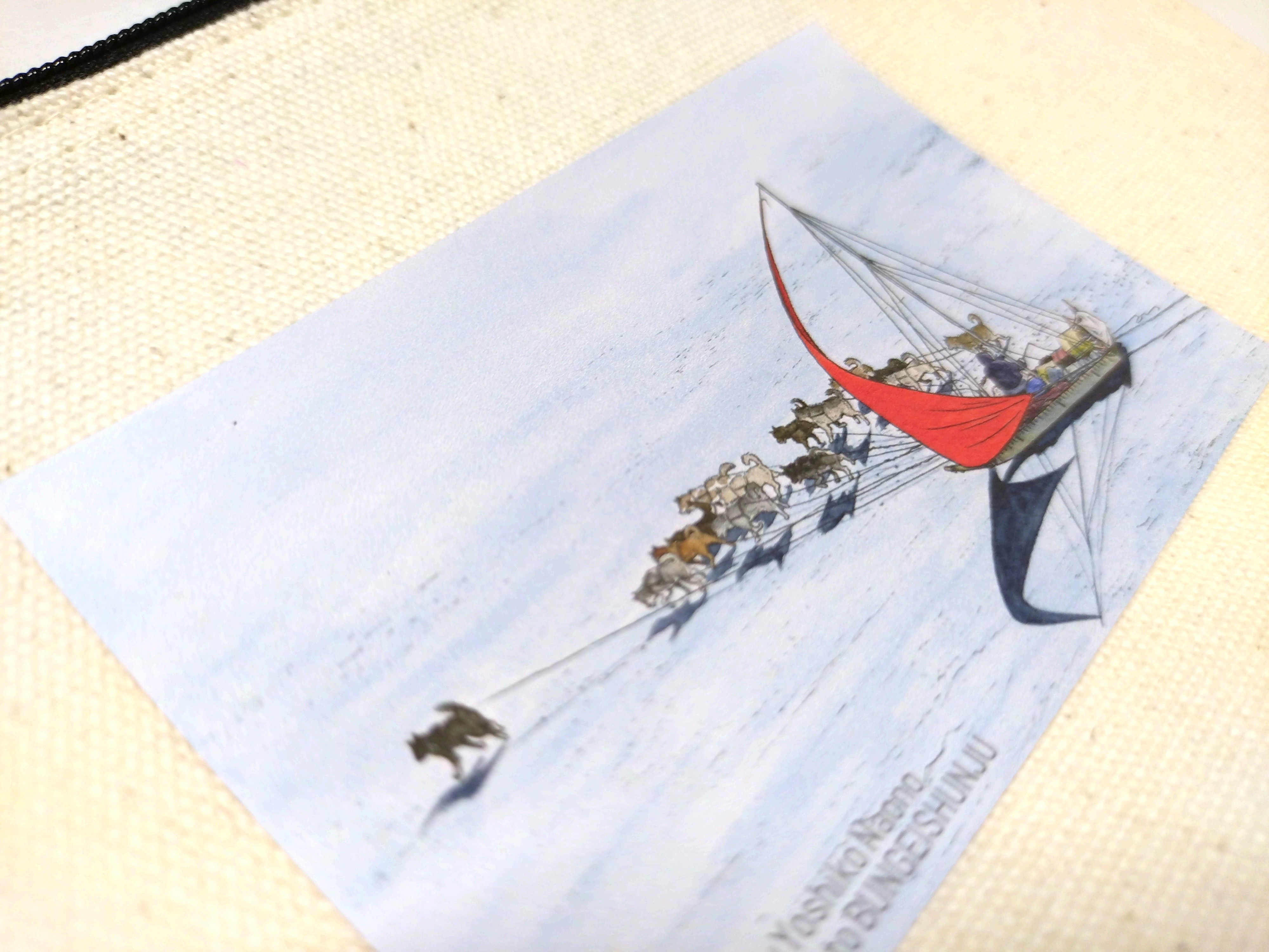 植村さんの「北極点グリーンランド単独行」の一場面が描かれたイラストポーチです。