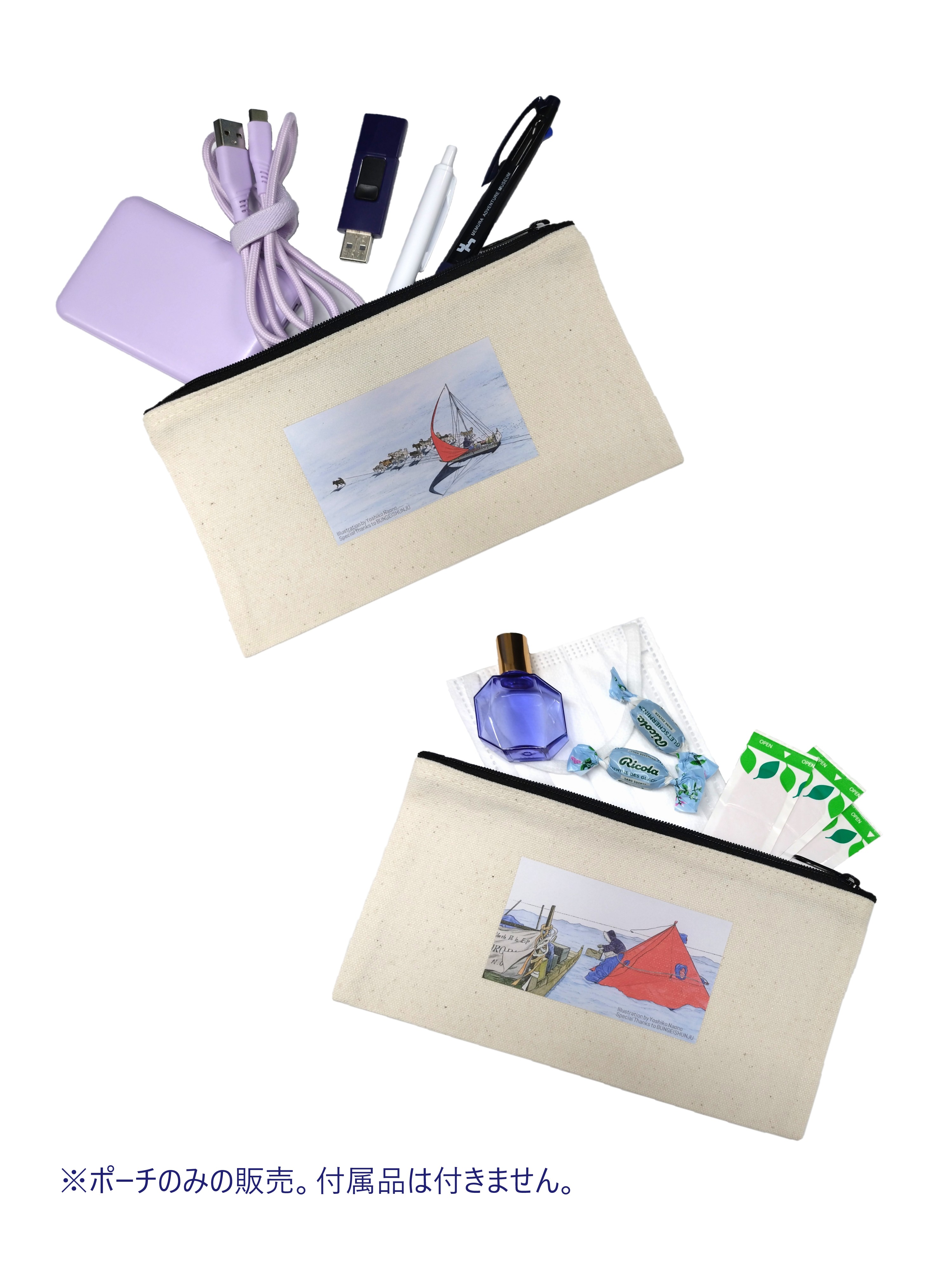 ポーチは小物を整理するのにちょうどいいサイズ。フラットポーチなのですっきり納まります。