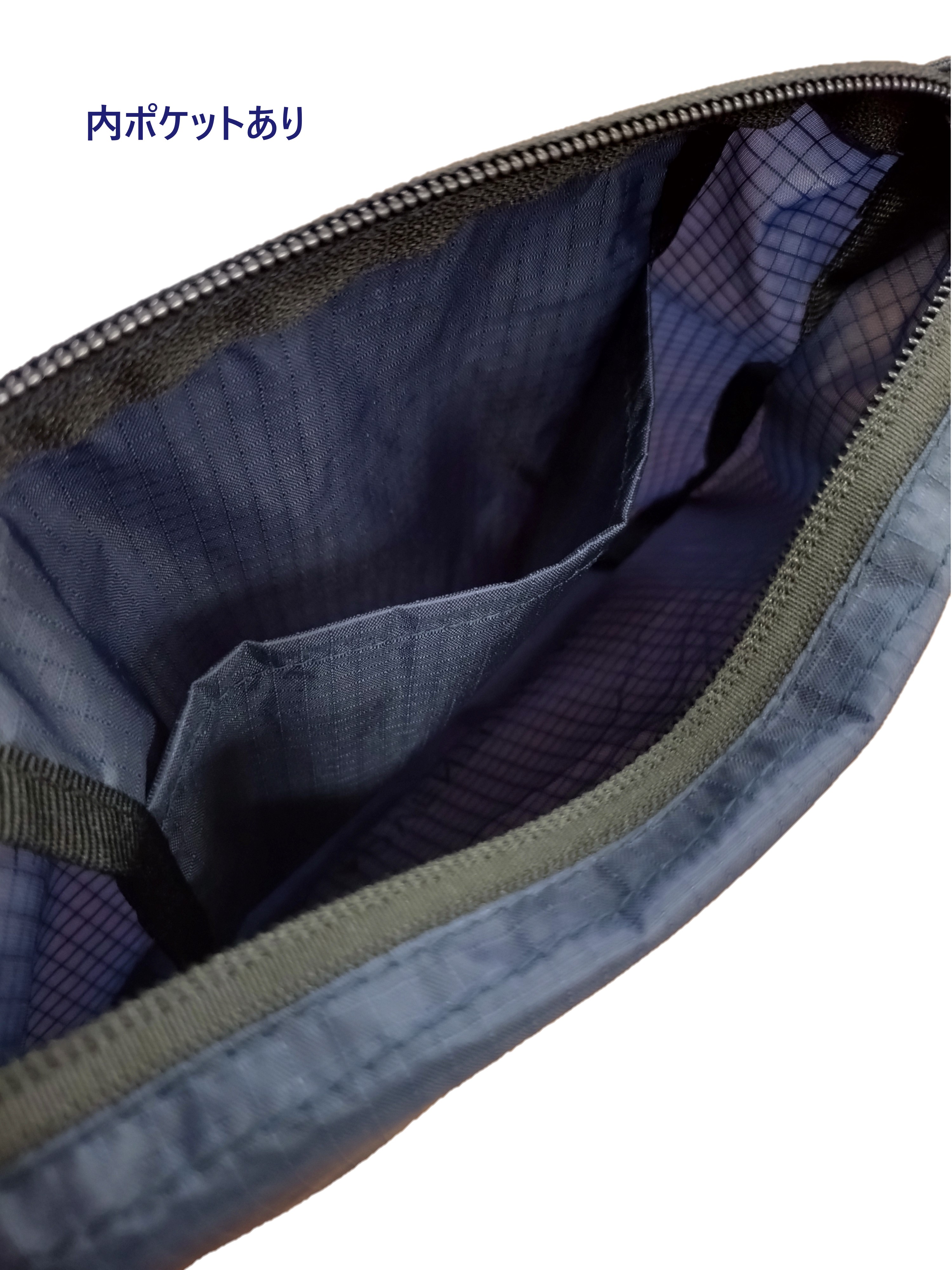 軽くて破れにくいリップストップ生地で、内側にはポケットもついています。